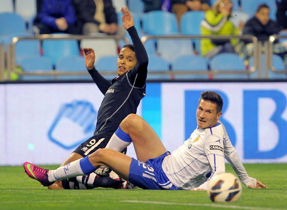 El Zaragoza no se achicaba y arropado por más de 25.000 espectadores que poblaban La Romareda, intentaba dar la réplica al buen arranque de choque visitante aunque no conseguía finalizar con éxito sus jugadas ofensivas.